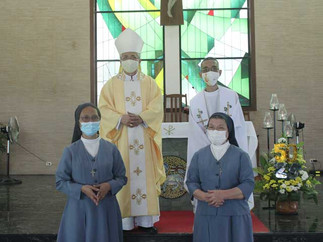due to the Covid-19 pandemic, Sr. Vilana S. Laluan and Sr. Maria Rita M. Siochi, joyfully celebrated their 25th and 50th Jubilee of Religious Profession respectively in Imus, Cavite. The Eucharistic celebration was presided over the Most Rev. Reynaldo G. Evangelista D.D., Bishop of the Diocese of Imus. Fr Lordencio Honrada, a long-time friend of the Pastorelle Sisters concelebrated. In his Homily, the Bishop expounded on the significance of the consecrated life and the challenge of the Pastorelle to shepherd the persons entrusted to our care. We are invited to take care and to guard them while blooming and becoming fruitful where we are sent.